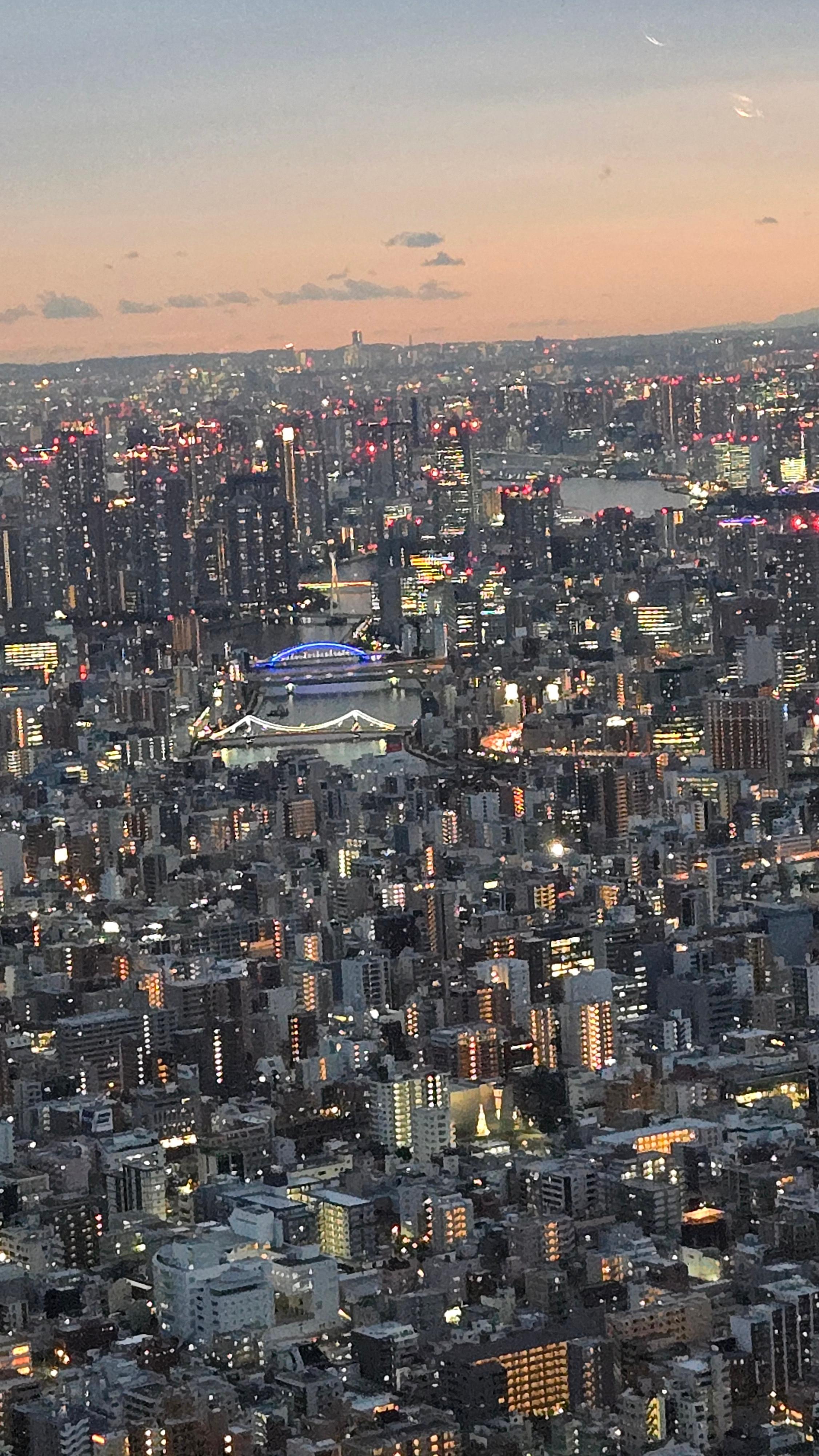 저는 일몰 시간에 맞춰 올라갔는데요, 정말 이 결정은 탁월했어요. 서서히 붉은빛으로 물들어가는 도시는 마치 한 폭의 그림 같았어요. 특히 서쪽 방향에서 보는 풍경은 굉장히 인상적이었는데, 멀리 도쿄 타워까지 솟아 있는 모습을 볼 수 있었거든요. 사람들이 선셋 포인트를 이미 다 차지하고 있었지만, 조금 기다려서 제 자리도 확보했답니다. 그리고 해 질 무렵, 도시는 점점 조명이 켜지면서 완전히 새로운 분위기로 바뀌었어요. 이렇게 한 자리에서 일몰과 야경을 모두 누릴 수 있는 곳은 흔치 않다고 생각해요. 제 스마트폰 사진첩에는 이 날 찍은 사진만 몇십 장 있는 것 같아요.