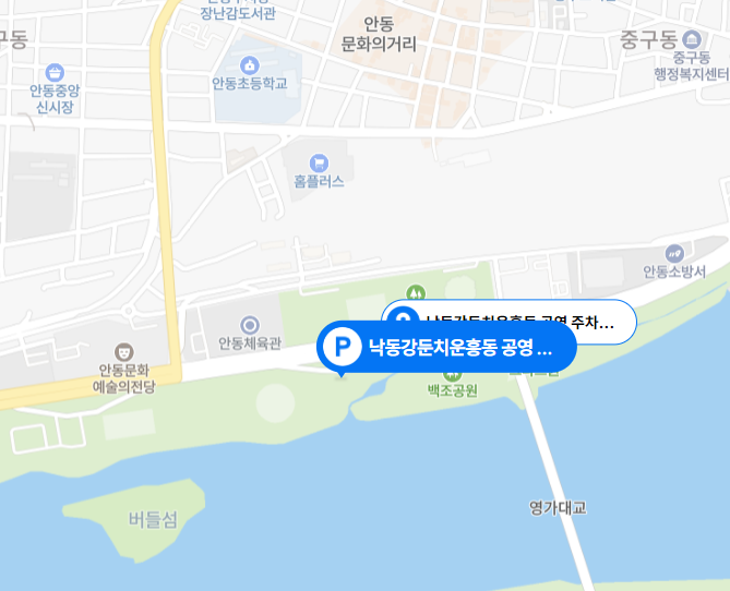 - 낙동강 둔치 운흥동 공영주차장 : 경북 안동시 육사로 218-12